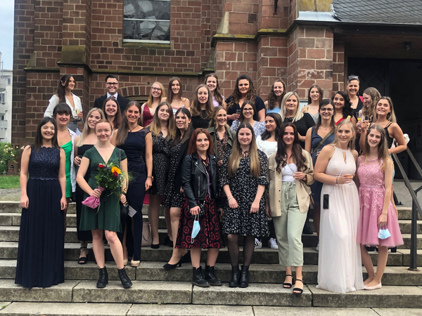 Die Absolventinnen der Klasse für Gesundheits- und Kinderkrankenpflege der Trierer Karl Borromäus Schule sind: Clara Paola Arnone, Anneke Benz, Marie Christin Görgen, Sophie Haag, Ronja Knauer, Janina Kother, Fenja Lauer, Julia Puschmann und Nicole Schier.