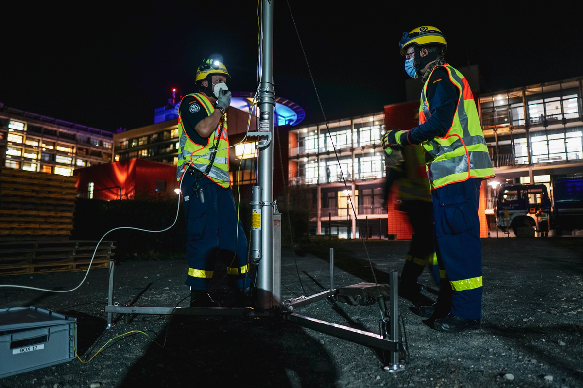 Dies kam in einer Simulationsübung auf dem Gelände des Klinikums Mutterhaus Mitte zum Tragen. An diesem Abend lernten Einsatzkräfte des THW die kurzfristige Bereitstellung alternativer Kommunikationstechnik.
