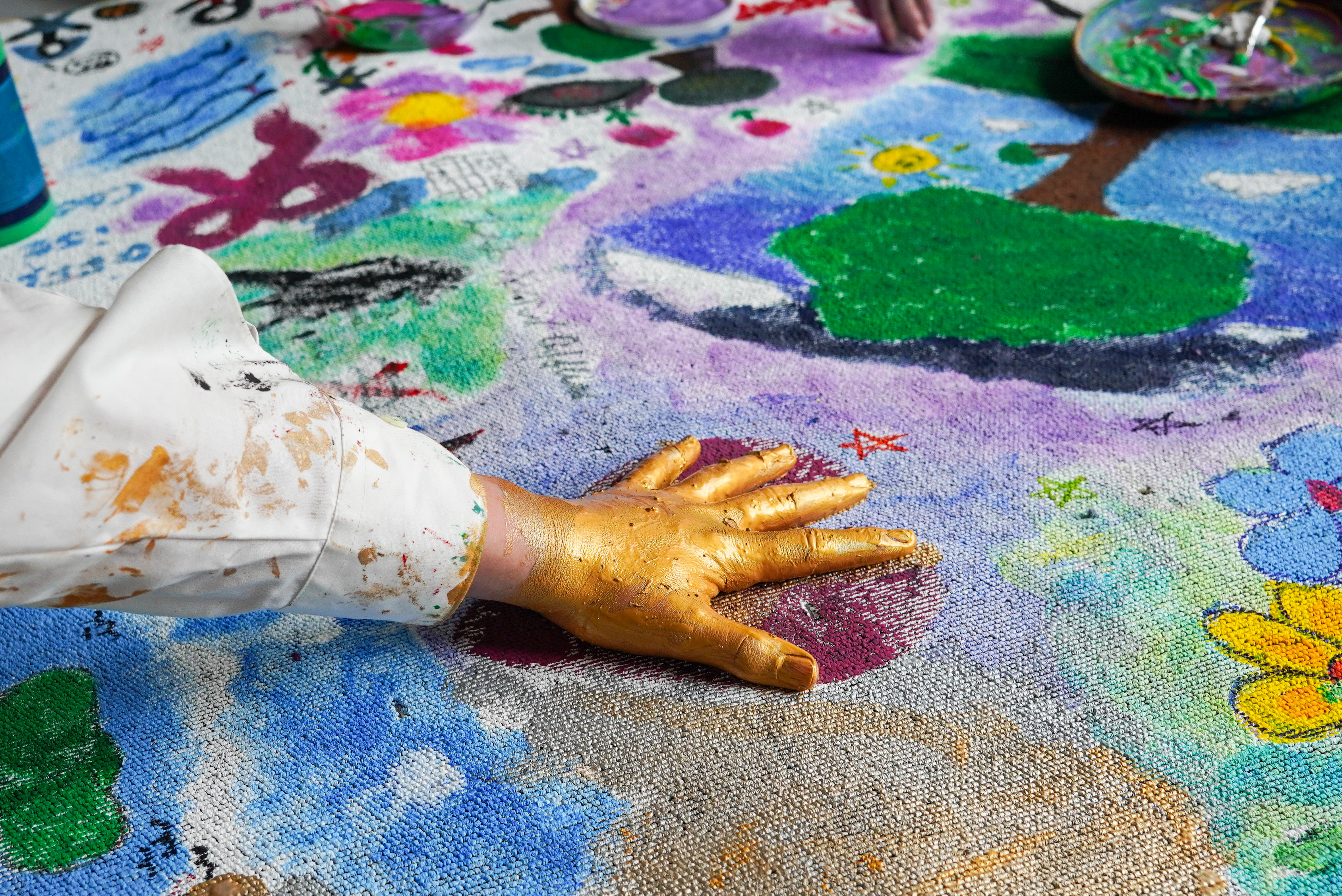Das Projekt ist bereits seit 2017 Teil des Ferienprogramms der Kinder- und Jugendpsychiatrie. Ziel ist es, jungen Menschen begreifbar zu machen, dass sie ihre Fähigkeiten erkennen, sichtbar machen und auch präsentieren können. Jedes Jahr werden dafür Künstlerinnen und Künstler aus der Region eingeladen, um den Jugendlichen einen kreativen Impuls in therapeutischem Rahmen zu geben. Besonders war diesmal der Werkstoff: Statt auf Leinwänden wurde auf großen Teppichen gemalt, die mittels eines Holzgestells an die Wand gehängt werden können.