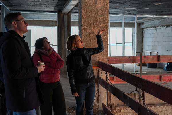 „Wir werden darauf achten, dass wir unser angestrebtes Ziel der Eröffnung auch tatsächlich realisieren“, betont Christian Sprenger, Geschäftsführer des Klinikums Mutterhaus, bei der Baustellenbesichtigung am Freitag. „Es geht darum, am Viehmarkt 1 zügig Praxen zu vereinen, um mit hoher medizinischer Qualität und guten Abläufen hier eine gebündelte ambulante Versorgung für Patientinnen und Patienten anzubieten.“