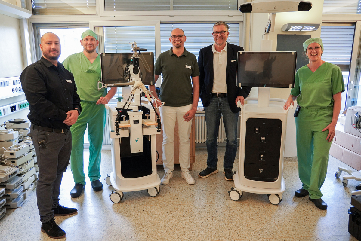 Roboter-assistierte Verfahren ermöglichen eine höchst präzise und ruckfreie Bewegung der chirurgischen Instrumente in alle Richtungen. So können komplexe Operationen im Schulterschluss zwischen Operateur und Roboter noch sicherer durchgeführt werden. Das Operationsteam aus Chirurgie, Anästhesie und OP-Pflege steht während des gesamten Eingriffs unmittelbar am Patienten.