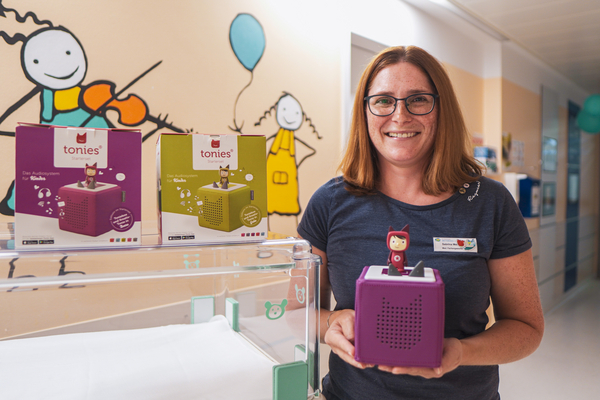 Die Toniebox spielt mit den entsprechenden Hörspielfiguren nicht nur eine Vielzahl an Liedern und Geschichten ab, sondern kann auch mit eigenem Text und Gesang bespielt werden. „Für Eltern, die ihre Kinder auf Station nicht täglich besuchen können, ist das eine tolle Möglichkeit, auf kreative Weise mit ihnen verbunden zu bleiben“, so Memmesheimer.