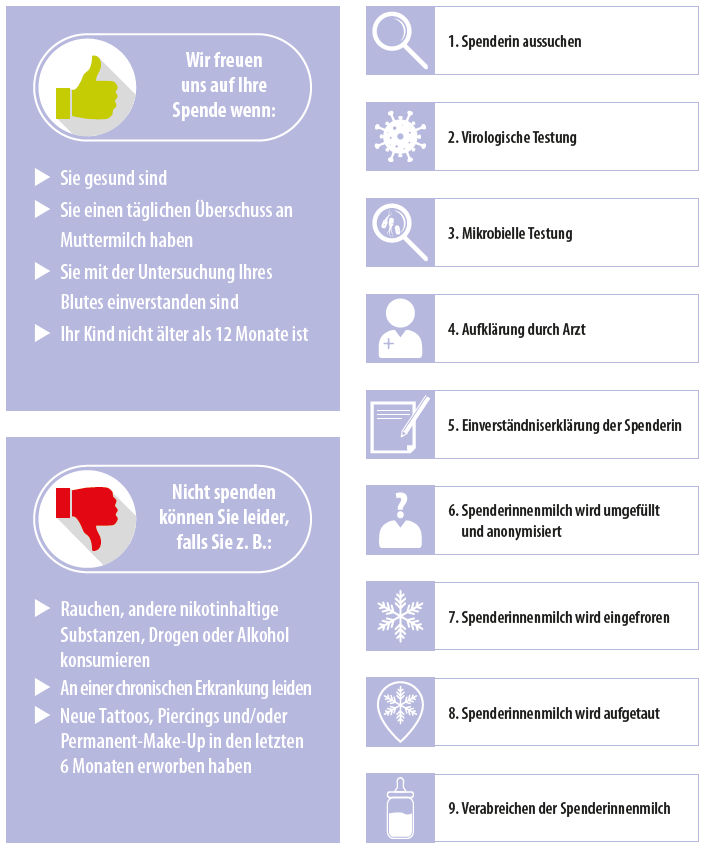 - Die Frauenmilchspende ist freiwillig und kann jederzeit ohne Angaben von Gründen wieder beendet werden