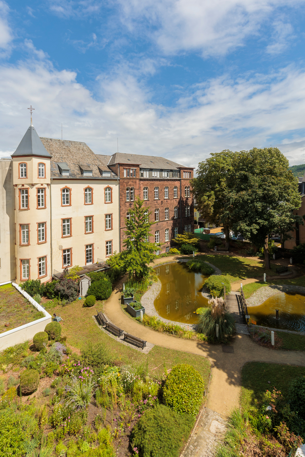 Zur Einrichtung gehört auch die Karl-Borromäus-Schule im historischen Kloster Sankt Clara. Als Akademisches Lehrkrankenhaus der Johannes-Gutenberg-Universität Mainz und Partner am Medizincampus Trier engagiert sich das Klinikum stark in der Ausbildung des medizinischen Nachwuchses. Getragen wird die Einrichtung von den Barmherzigen Schwestern vom heiligen Karl Borromäus, einer 1859 gegründeten Kongregation päpstlichen Rechts. Ihrem caritativen Auftrag folgend widmen sich die international tätigen Ordensschwestern bis heute unter anderem dem Dienst am kranken und hilfsbedürftigen Menschen.